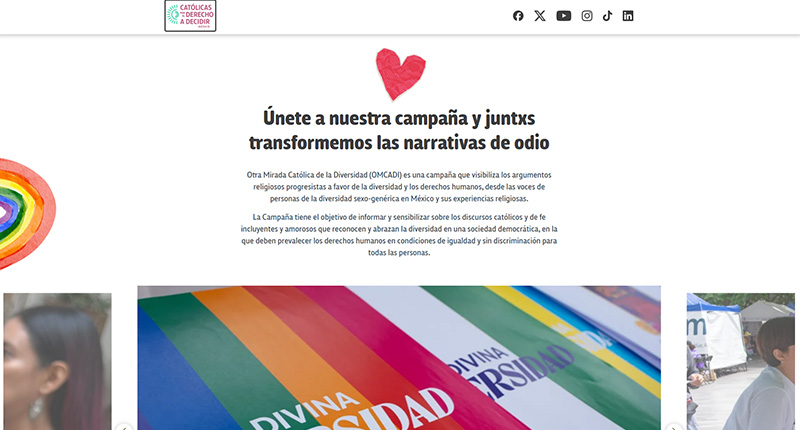El sitio “Otra Mirada Católica de la Diversidad” (OMCADI) presenta una campaña impulsada por Católicas por el Derecho a Decidir México que busca replantear la relación entre la fe católica y la diversidad sexual. Su propuesta central es que la religión no tiene que ser un espacio de exclusión, sino que puede ofrecer fundamentos teológicos y espirituales que respalden los derechos humanos, la dignidad y la inclusión de las personas de la diversidad sexo-genérica.