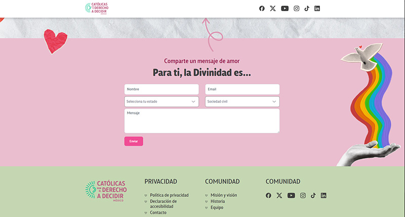 Además, el sitio invita activamente a la participación social: compartir contenidos, difundir mensajes y sumarse a la transformación de las narrativas dentro de la Iglesia y otros espacios de fe. En este sentido, no es solo informativo, sino también movilizador, buscando construir comunidades religiosas más seguras, inclusivas y respetuosas de los derechos humanos.